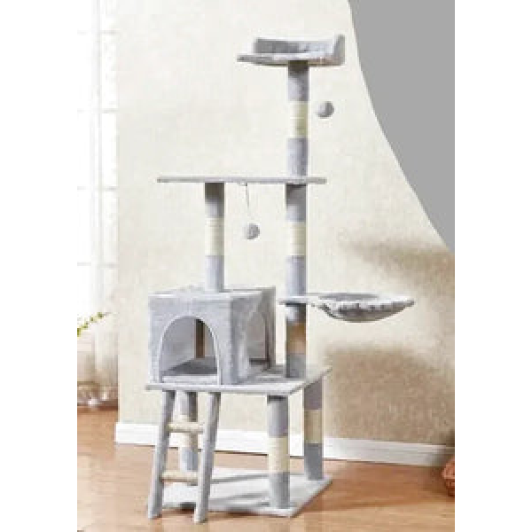 Offrez à votre félin un espace de jeu vertical stimulant avec notre arbre à chat gris clair avec échelle ! Conçu pour satisfaire l'instinct naturel de votre chat à grimper, cet arbre transformera votre intérieur en un véritable terrain d'aventure. Imaginez votre chat s'épanouir, explorant les différents niveaux et se défoulant en toute sécurité.