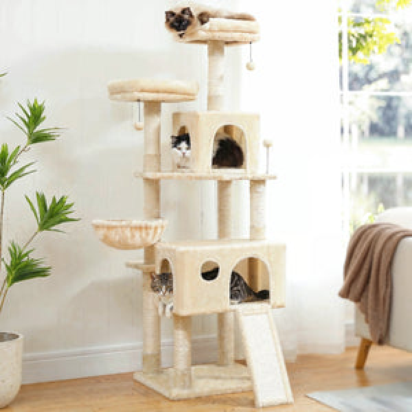 Arbre à chat XXL tout-en-un : espace, confort et jeu pour chats ! Plateformes spacieuses, niches douillettes et hamac relaxant. Solution idéale pour grands chats et foyers multi-chats. Protégez vos meubles !