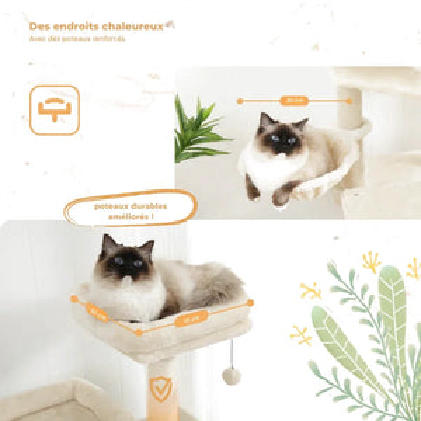 Cet arbre à chat est bien plus qu'un simple meuble; c'est un investissement dans le bien-être de vos chats. Il offre de multiples surfaces pour grimper, griffer et jouer, tout en protégeant vos meubles des griffes acérées. Finis les meubles abîmés ! Vos chats auront leur propre espace dédié pour satisfaire leurs instincts naturels.