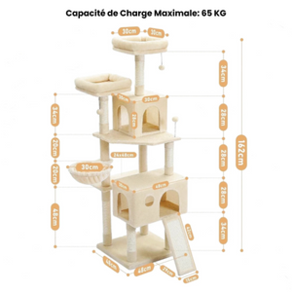 Imaginez vos chats explorant un univers de possibilités : des plateformes spacieuses pour se prélasser, des niches douillettes pour des siestes réparatrices et un hamac moelleux invitant à la détente. Fabriqué avec des matériaux robustes et durables, cet arbre à chat est parfait pour les chats de toutes tailles, y compris les Maine Coons et autres grands gabarits, grâce à sa stabilité exceptionnelle.