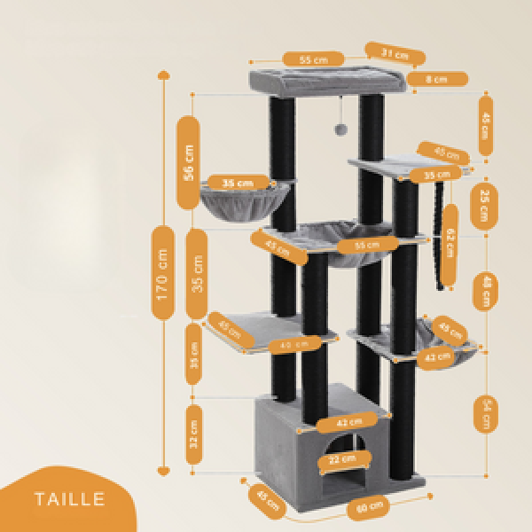 Offrez à vos chats le luxe qu'ils méritent et transformez votre intérieur en un véritable paradis félin ! Cet arbre à chat XXL est la solution idéale pour combler leurs besoins naturels, préserver vos meubles et créer une ambiance conviviale et harmonieuse dans votre foyer.